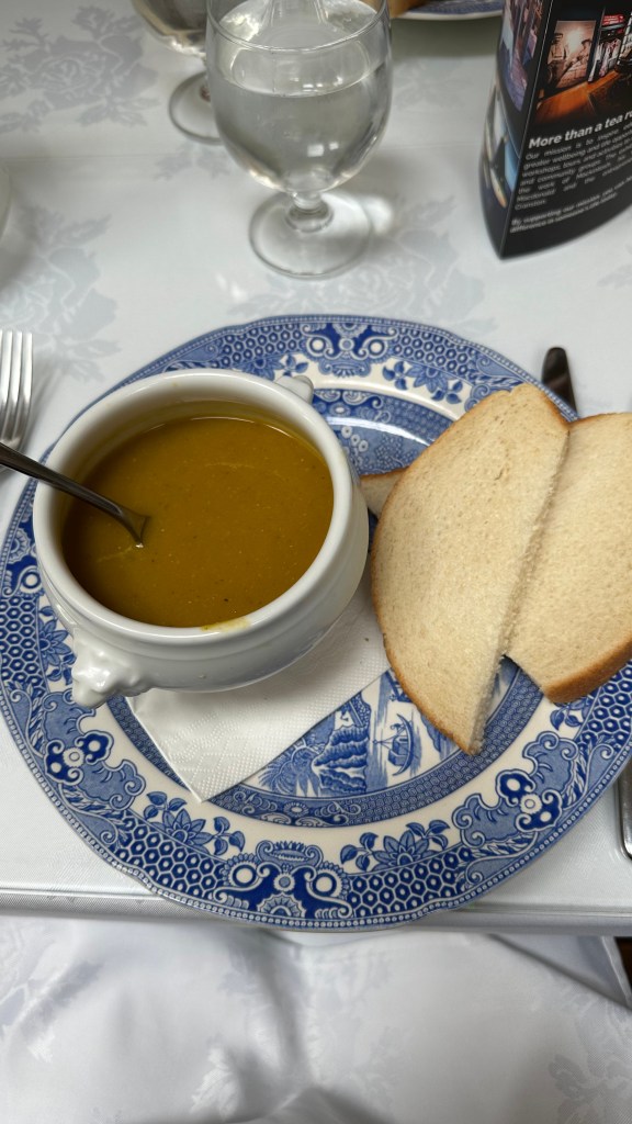 Lunch was at a historical tea shop with a set menu. When I heard “lentil soup,” I wasn’t exactly thrilled. I mean, soup is fine. But lentils? Not exactly exciting.