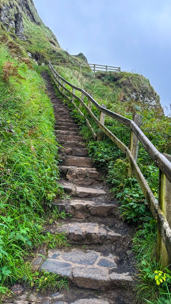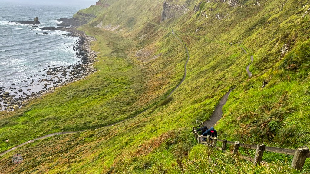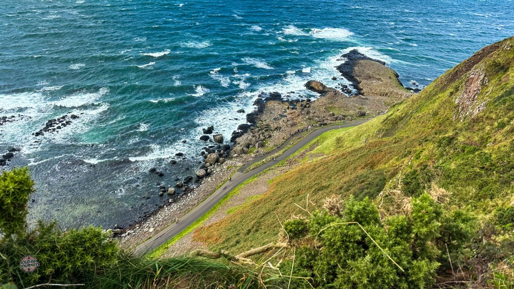 I didn’t know what to expect, but the Giant’s Causeway quickly became one of my favorite places. The walk from the visitor center was long and scenic, with misty air, dramatic cliffs, and endless photo ops. At first it was cold, wet and windy, but then the sun broke through, and the whole landscape seemed to glow.