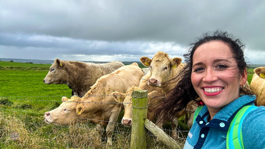 Of course, in true Amanda fashion, I managed to turn a simple walk into an accidental workout. Instead of taking the shuttle back, I chose the “alternate route.” Spoiler: it was not shorter. It included 162 steep steps, literal gale‑force winds that had me clinging to the rails, and a surprise herd of cows at the top. Naturally, I stopped for cow selfies.
